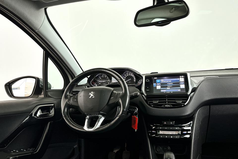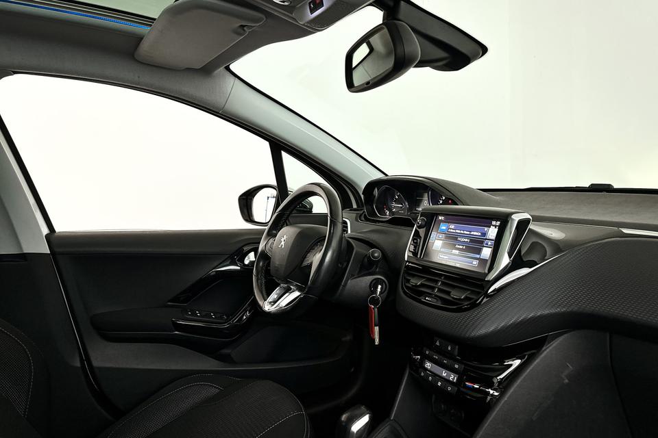 In deze 208 vindt u schakelaars op het stuur om het audiosysteem te bedienen. Tot de standaard uitrusting van deze auto hoort ook climate control. De parkeersensoren waarschuwen wanneer u te krap inparkeert of dat ene paaltje niet hebt gezien. Natuurlijk is een complete auto als deze ook voorzien van sensoren die de omgeving in de gaten houden. Deze Peugeot heeft niet alleen een automatisch inschakelbare verlichting aan boord, maar ook een regensensor. De cruise control betekent gemak, comfort en zuinig rijden. Ook is de Peugeot uitgerust met: automatisch dimmende binnenspiegel, lederen stuur, centrale deurvergrendeling met afstandsbediening en boordcomputer.